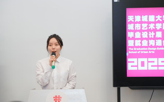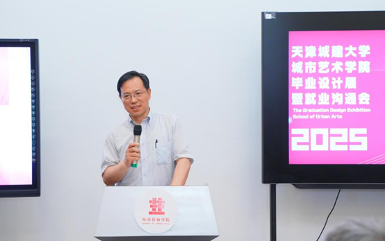 教务处处长赵国敏在致辞中表示,毕业设计展不仅是一场艺术盛宴,更是展示学院市级一流专业、应用型专业等建设效果的生动答卷。在国家大力发展新质生产力的战略背景下,经济社会发展特别是现代化产业体系对高素质应用型人才培养提出了新的要求,城市艺术学院持续做好教学改革创新、不断优化学科专业特色,通过举办这场毕业设计展暨就业沟通会,把学生的毕业设计融入企业的实际需求中去,为毕业生与用人单位搭建一个面对面了解、沟通的平台,积极推动就业落实。