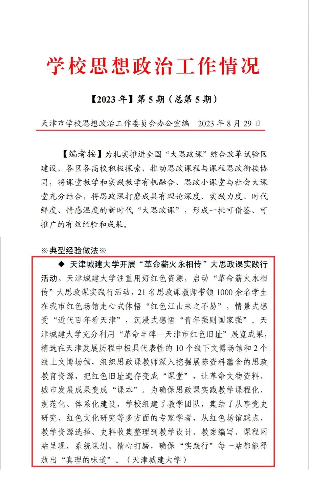 “革命薪火永相传”大思政课实践行、“探寻人民城市”大思政课实践活动经验被《学校思想政治工作情况》收录