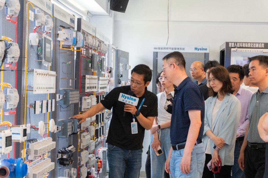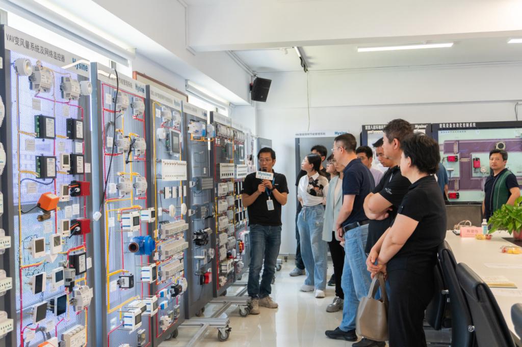 bv伟德师生首先参观了和欣北京研发中心、和欣能源管理云中心、建筑设备物联网、暖通机电产品展示中心。产品部经理胡羽详细介绍了建筑设备自动化实训教学系统、EMS-500楼宇自控节能管理系统、H5000PLC控制系统、智能照明系统、VAV变风量系统、能源计量系统、强弱电一体化智能控制柜(冷冻泵、冷却泵)系统的功能、特点与应用场景,展示了和欣控制自主研发、市场前景和产业前沿技术需求等现状。