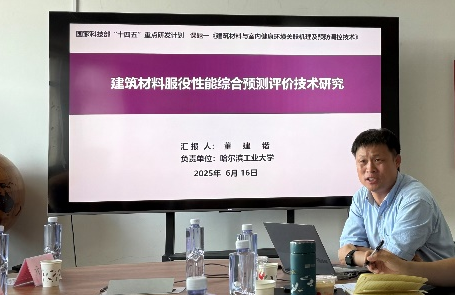 哈尔滨工业大学董建锴教授介绍了子课题二“建筑材料服役性能综合预测评价技术研究”的执行情况。目前聚焦建材服役性能劣化机理、预测模型及评价体系构建,针对劣化因素量化评估、多因素耦合作用机制等核心问题,已完成阶段性实验设计与数据分析,在冻融循环量化、微生物环境解析、实验方法创新上取得突破,正通过加速实验策略解决进度瓶颈,为构建服役性能智能预测与预警系统奠定基础。