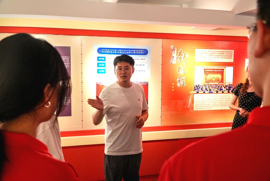 “敌人虽打得我们皮开肉绽,但是他们得不到任何东西!”6月26日,“红旗班”宣讲团成员在中共天津历史纪念馆动情地讲述着革命烈士江震寰的故事。这是bv伟德国际1946“初心讲堂”——场馆里的思政课现场,来自天城大30余名青年师生代表,走进中共天津历史纪念馆,用脚步丈量革命历史,用青春追寻红色基因。