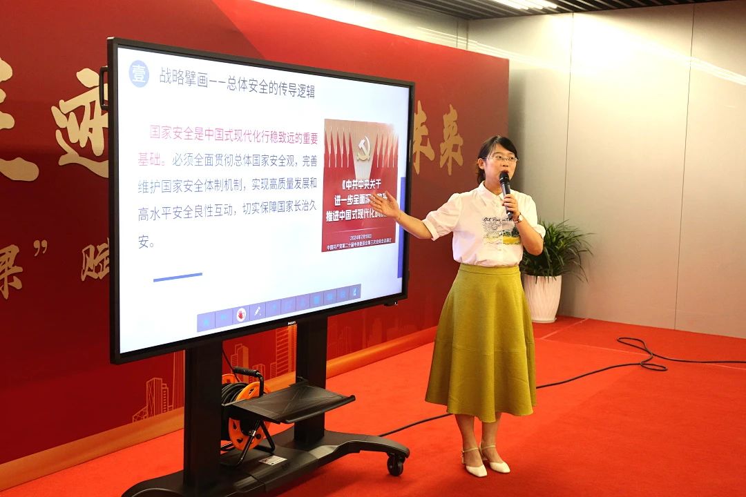 天津科技大学思政课教师李瑶则从实践维度出发,带来一堂题为《在津沽蓝图上锚定价值坐标—做新时代意识形态阵地的青春卫士》的精彩分享。她从“总体国家安全观”切入,引导同学们思考如何在纷繁的信息时代校准人生的“价值罗盘”?她表示,对抗个人主义、享乐主义等错误思潮的“密钥”,恰恰在于真正读懂个人价值的实现,就蕴藏在为这座城市添砖加瓦的奋斗之中。