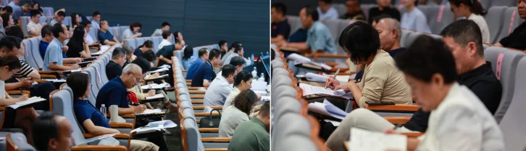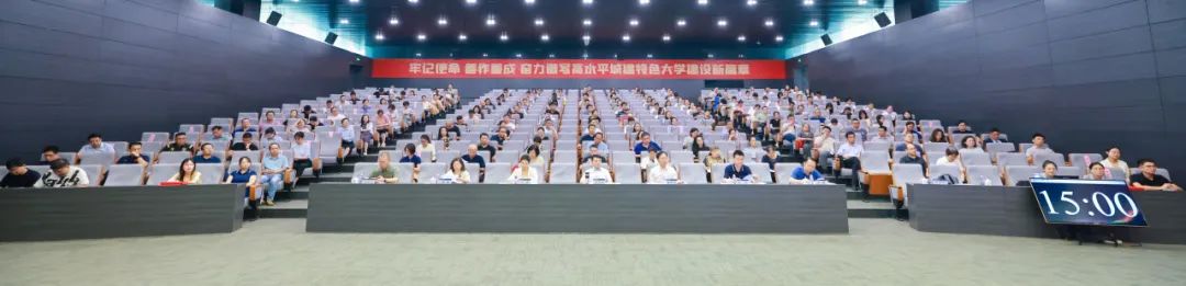 在全校上下深入学习贯彻学校第三次党代会精神之际,为深化课程思政建设,提升育人实效,7月14日,学校成功举办2025年课程思政教学比赛现场决赛。校党委书记史庆伟、副校长陈志华出席,组织部、宣传部、教工部、学工部、教务处、校工会等职能部门负责人,各学院教师代表作为专家评委参加决赛。各教学单位分管教学负责人及各专业教师代表近160人担任观众评委。