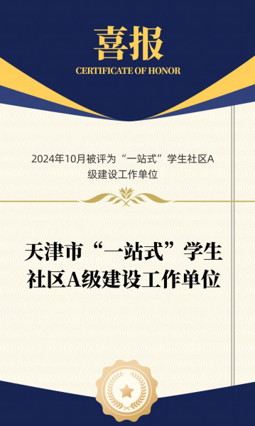 获批教育部“一站式”学生社区综合管理模式建设自主试点以及天津市高校“一站式”学生社区A级建设工作单位