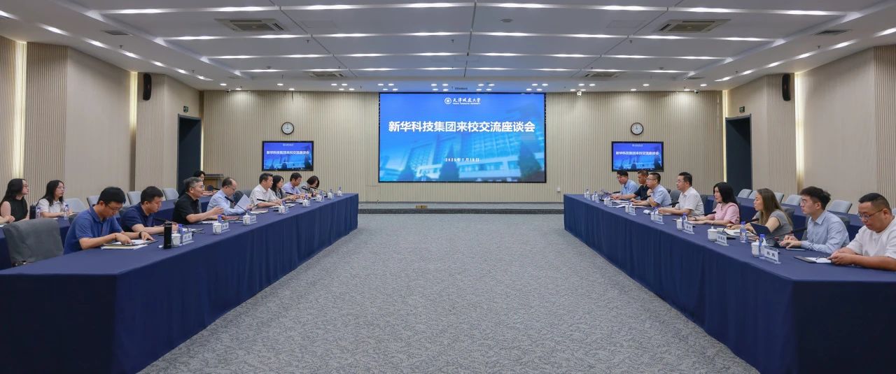 王中良对梅长春一行的到来表示欢迎,对新华科技园集团为学校发展提供的支持表示感谢。他简要回顾了近年来学校与集团合作交流的情况,并指出一直以来学校积极响应国家创新驱动发展战略,致力于构建高水平人才培养体系,推动科技创新与成果转化,为地方经济社会发展提供强有力的人才和智力支持。希望双方能够利用各自优势,在“技术研发-成果孵化-产业加速”等方面建立常态化合作交流机制,推动校企协同与经济发展同向同行,促进企业技术需求与教师科技成果的有机融合,推动落实产教融合、科教融汇,形成产教研学一体化格局,共同打造高质量的合作交流平台和校企合作品牌,在长期、稳定、全面、深度的战略合作中携手共创高质量发展新局面,真正实现校企双赢,共同为天津的高质量发展聚能提效。
