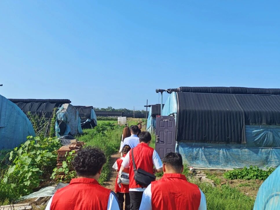 本次实践,王老师介绍了生物质供暖技术:燃料源于秋收后的秸秆,燃烧热量通过地下管网输送至各大棚土壤,保障适宜温度。棚顶铜色热管可吸收土壤多余水汽,经顶部蒸发后,凝结水滴用于灌溉。正午时,棚顶喷头喷出细密水珠,使棚内温度稳定在26℃左右,显著低于室外。堆肥区的“泡泡机”能有效处理农家肥,减少异味。我们有幸进入其中一个大棚近距离感受有机蔬菜的魅力。这场实践教会我的,不是某个公式或设备,而是重新认识了“能源”和“土地”的关系。以往认为能源技术高深,如今发现它存在于需保温的土壤、待生长的果蔬及农民的期盼中。作为能源学院的学生,我深刻体会到:我们的专业不该只在实验室里“纸上谈兵”,而是要走到土地里,去听土地需要什么,去看农民盼望什么——因为最好的能源技术,从来都不是实验室里的“杰作”,而是土地和人共同写就的“故事”。