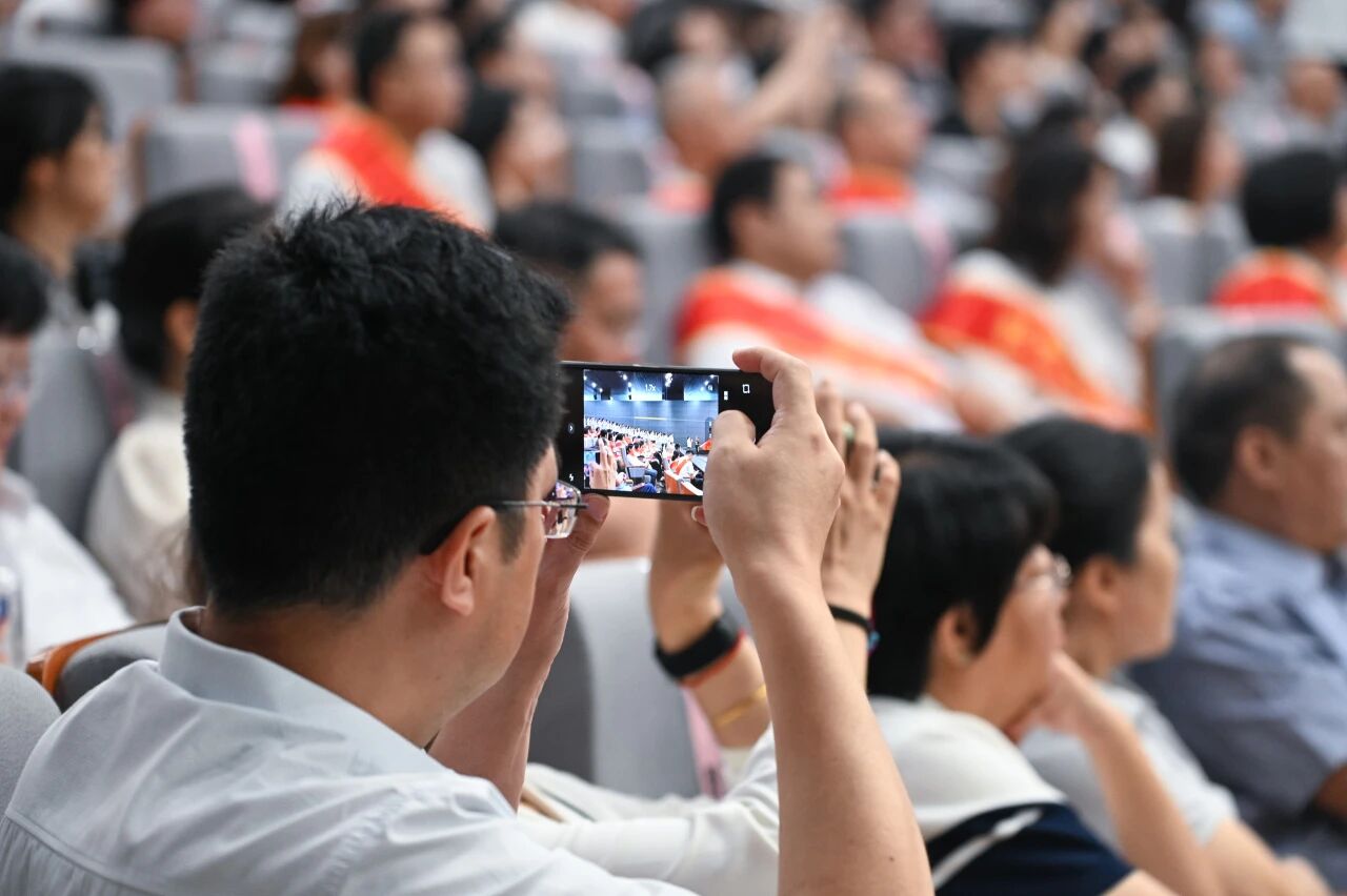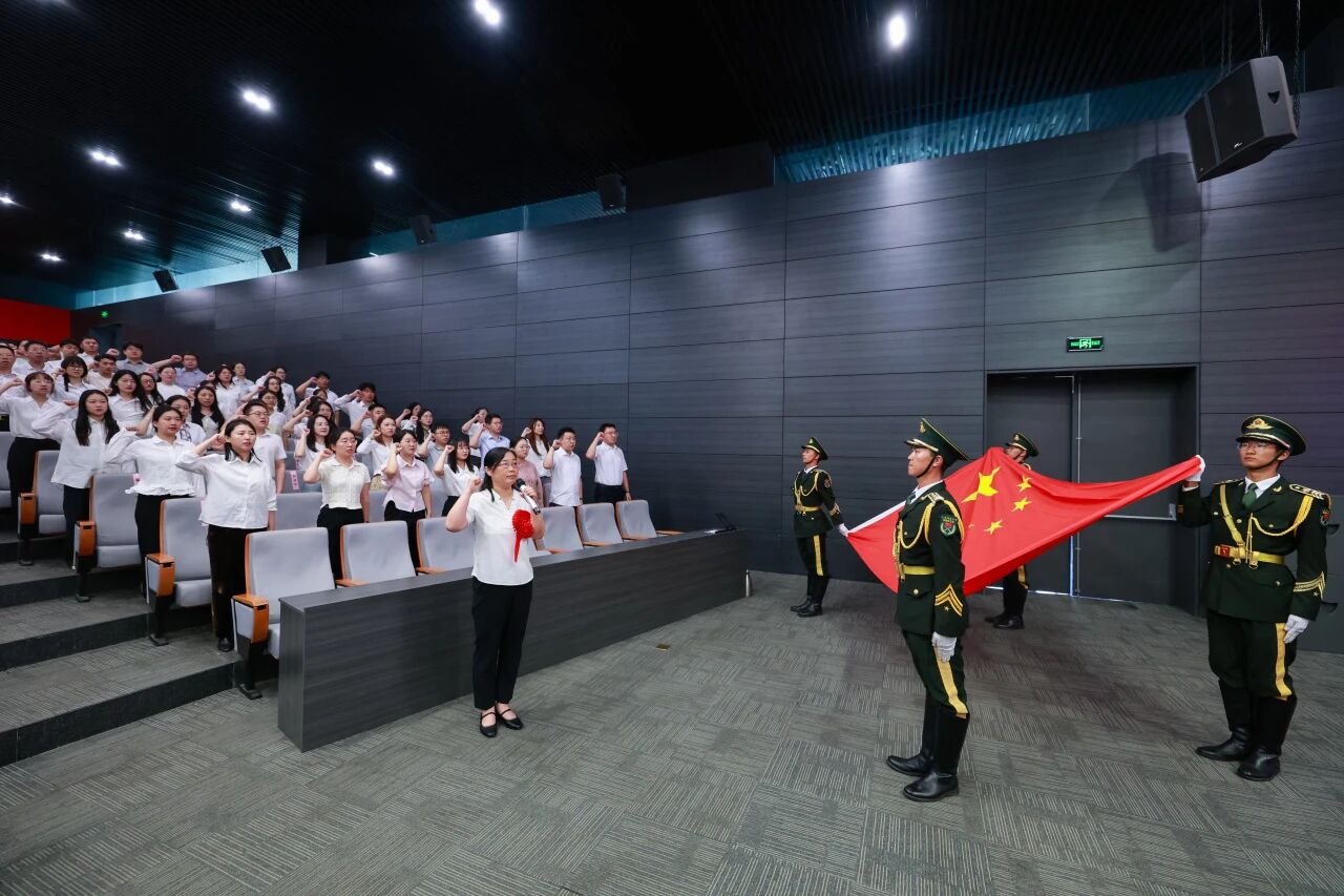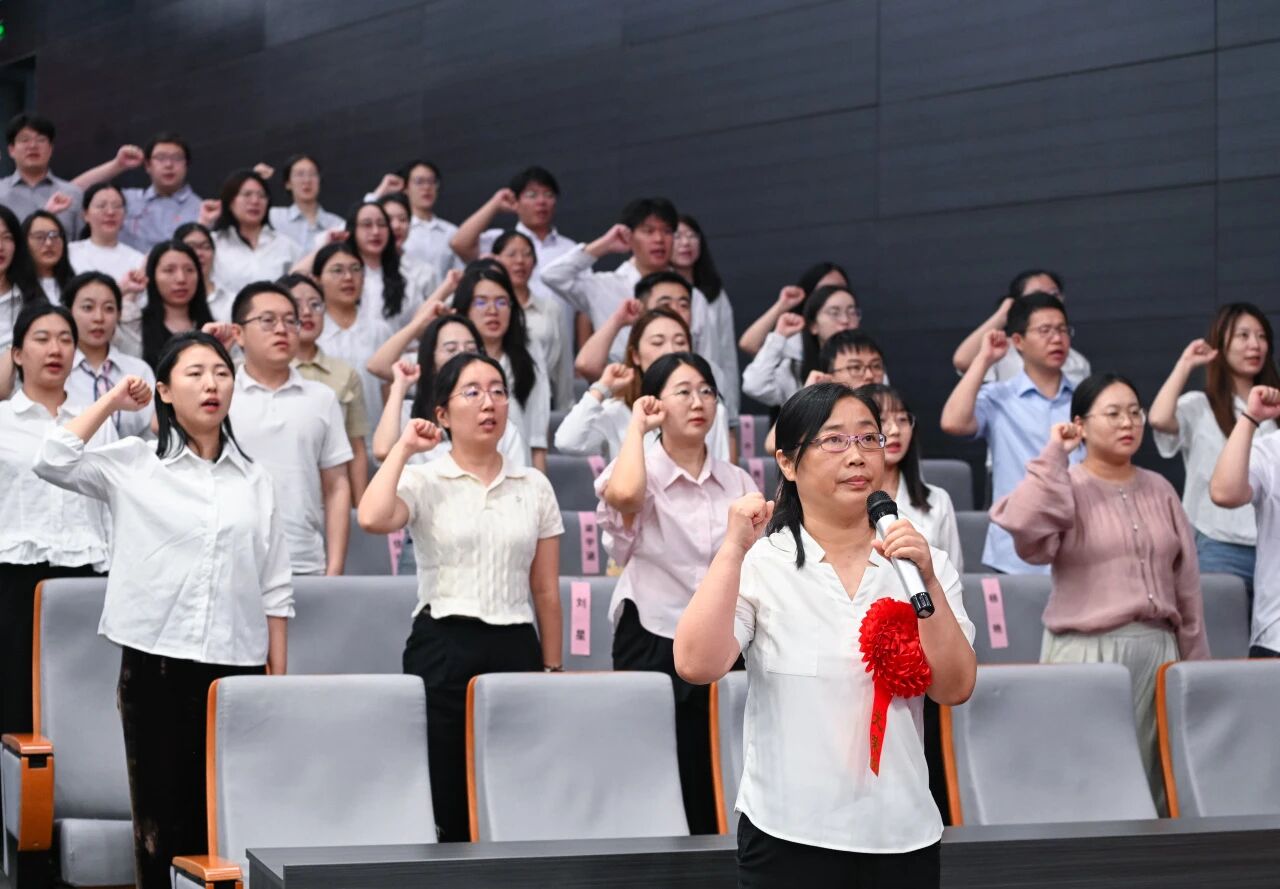 全体新入职教师面向国旗庄严宣誓,铿锵有力的誓言是他们积极投身教育强国实践的郑重承诺,彰显了对教育事业的无限热爱与崇高敬意。