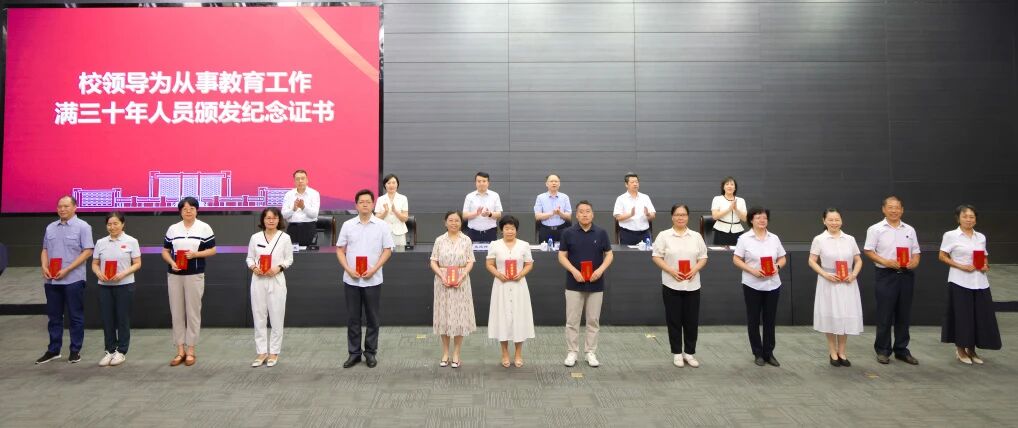 校领导为从教满三十年教师颁发纪念证书,青年教师向老教师致敬。三十年坚守初心,三十年立德树人,老师们将青春年华奉献给三尺讲台,用爱与责任为教育写下最质朴、最动人的注脚。青年教师接过立德树人的接力棒,让教育之光在天城大这方热土上接力耕耘,薪火相传。