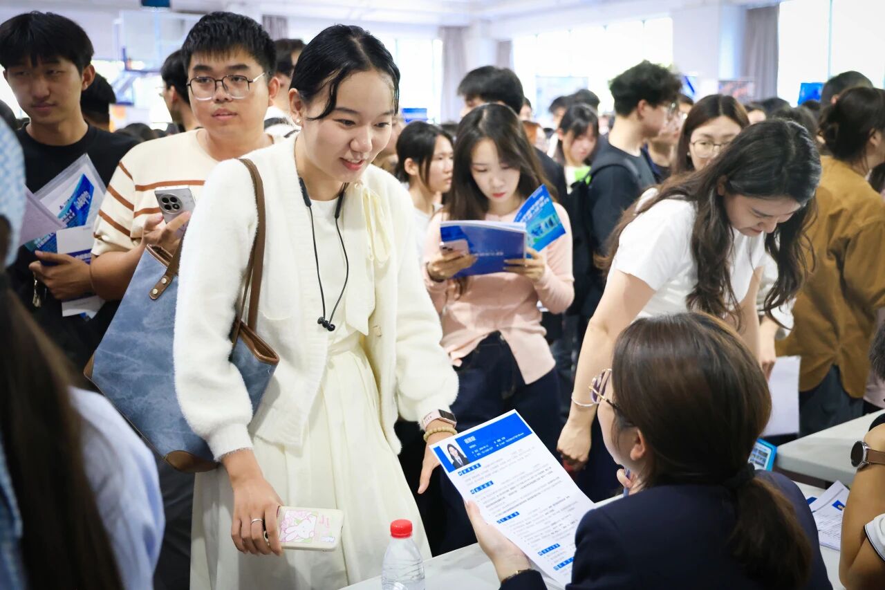 招聘会现场气氛热烈,毕业生穿梭于各企业展位之间,与用人单位积极洽谈。材料科学与工程学院应届毕业生包同学表示:“学校筹备的这场高水准招聘会为我们提供了宝贵的求职机会。我重点关注了天津中标检测认证有限公司,其检测类职位与我的专业方向高度契合,我十分渴望能成为该公司的一员”。