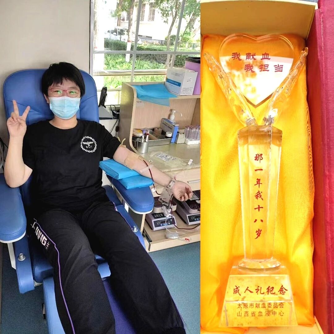 怀揣着对党的无限忠诚与热爱,刚满十八岁的她,就递交了入党申请书,在党旗下许下铮铮誓言。退役复学后,她光荣地成为学院本级首批预备党员,这不仅是一份荣誉,更是一份责任。从成年之日起,她坚持每年无偿献血,四年间累计献血1600毫升。她坚信奉献是青春最亮丽的底色。