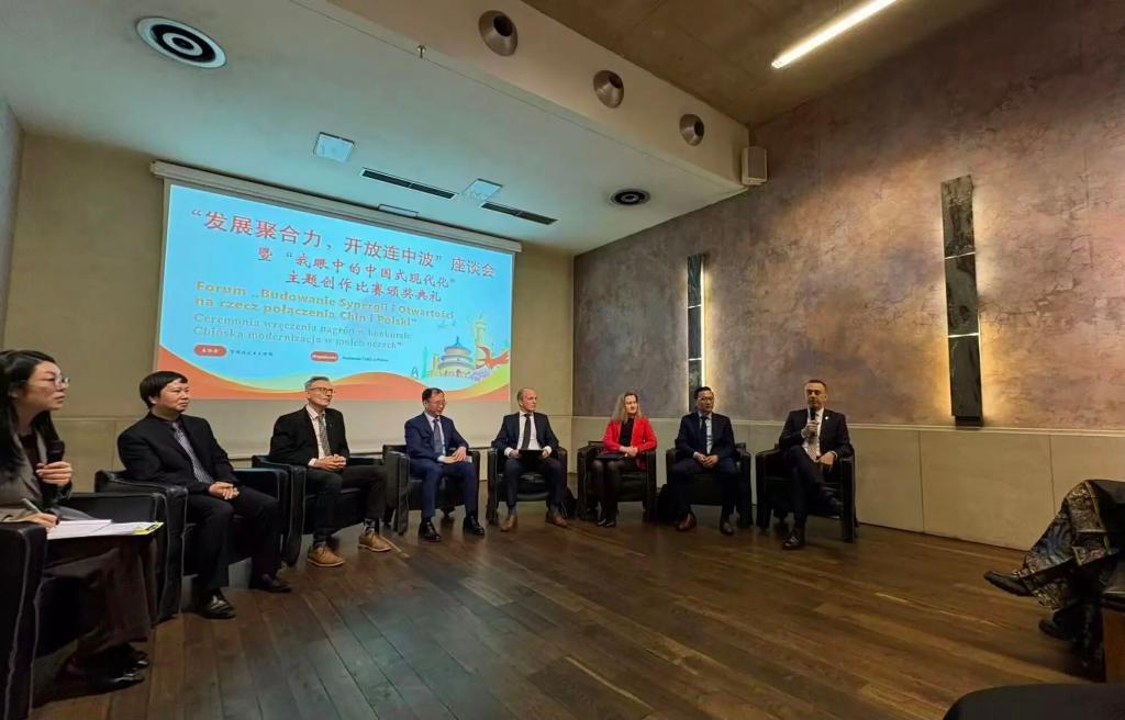 本次论坛以“构建协同开放互联互通”为核心议题,汇聚了中波两国学术界、科研界和教育界的领军人物。作为研讨嘉宾,景一帆与克拉科夫工业大学校长Andrzej Szarta教授、Katarzyna Baron-Lisiakiewicz教授,AGH大学Piotr Małkowski教授、郑堃教授,SOLARIS国家同步辐射中心副主任Michał Młynarczyk以及克拉科夫孔子学院中方院长陈忠等专家学者同台交流,围绕中波两国在教育、科研与文化领域的协同发展路径与未来合作机遇,展开了深入而富有建设性的探讨。