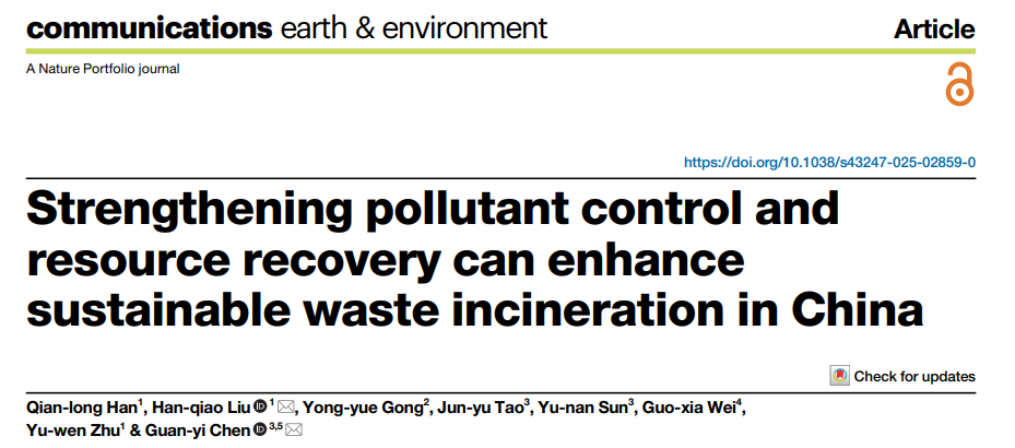 近日,bv伟德能源与安全工程学院刘汉桥教授联合天津商业大学陈冠益教授在城市固废资源化与减污降碳领域取得重要进展。相关成果于2025年10月以Article形式发表于《Nature》旗下期刊Communications Earth & Environment,题目为“Strengthening pollutant control and resource recovery can enhance sustainable waste incineration in China”。