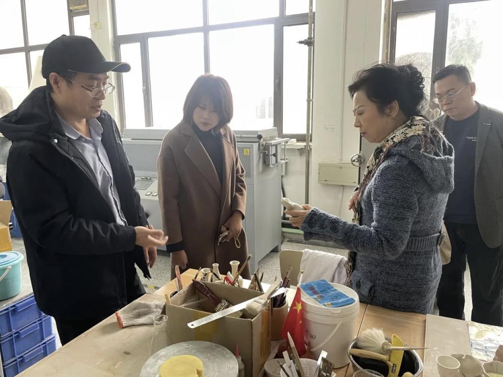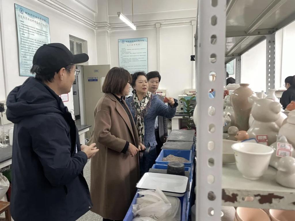 签约仪式后,双方参观了材料学院陶瓷文化传承与制作科普基地。科普基地作为学院材料学科的“实践课堂”,是向社会展示材料科学魅力的重要窗口。展厅内,传统青花瓷与新型功能陶瓷隔空对话,手工拉坯工具与3D打印设备相映成趣,社区代表认真聆听陶瓷材料在建筑、环保、电子等领域的应用介绍,并就材料研发细节与基地教师深入交流。通过沉浸式体验,代表们深刻感受到“材料科学+传统文化”的独特魅力,进一步理解了学院的学科特色与育人理念,为后续推进“科普进社区”等合作项目奠定了扎实基础。