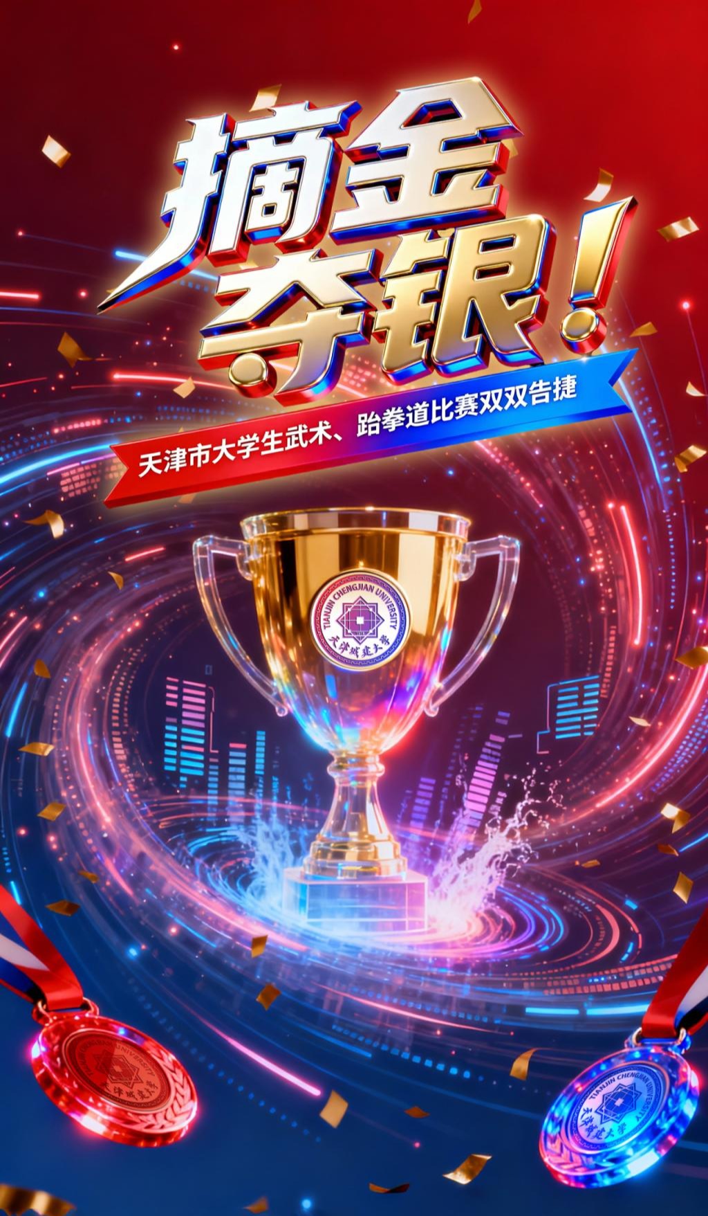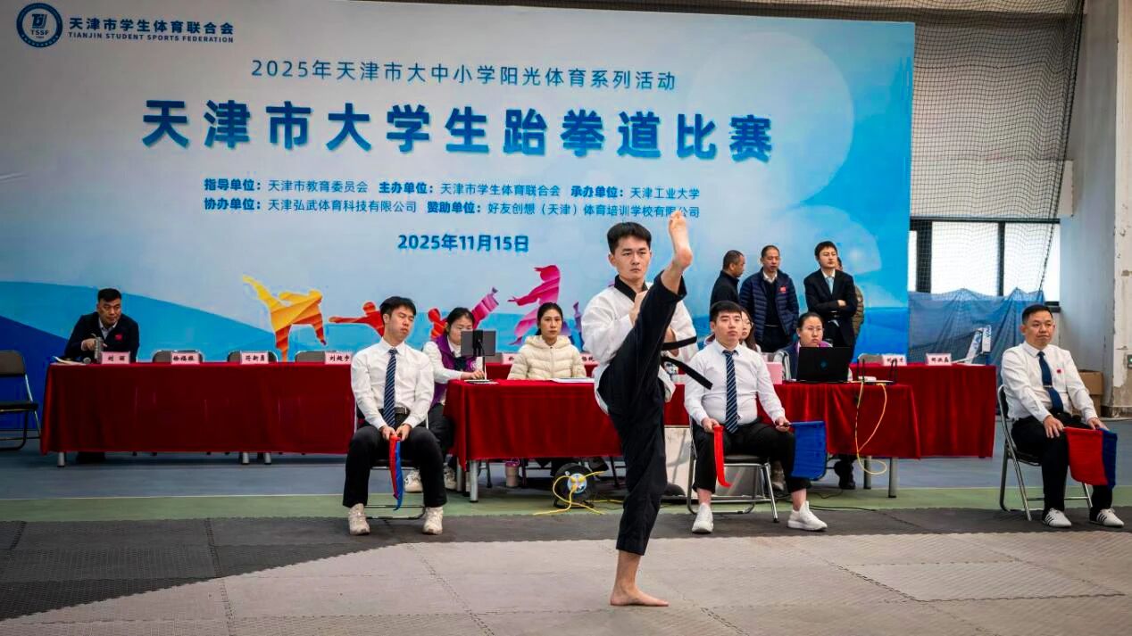 近日,由天津市教育委员会主办,天津市学生体育联合会、津南区文化和旅游局(体育局)承办的天津市大学生武术比赛,以及由天津市学生体育协会主办、天津工业大学承办的2025年天津市大学生跆拳道比赛相继圆满落幕。两项赛事汇聚了全市多所高校的优秀运动员同场竞技。经过激烈角逐,bv伟德代表队发挥出色,在武术比赛中斩获18项奖项,在跆拳道比赛中斩获14项荣誉,充分展现了bv伟德青年学子卓越的竞技实力与昂扬的精神风貌。