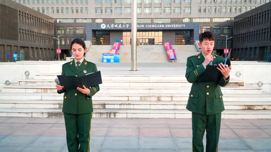 大学生预备连武警退役士兵刘思宏、洁娜古丽・亚森以《薪火相传爱国情 挺膺担当砺青春》为题作国旗下演讲。他们结合军旅生涯经历,讲述了当代青年对爱国精神的理解与践行,号召同学们传承爱国精神,将个人理想融入国家发展,争做民族复兴的先锋力量。
