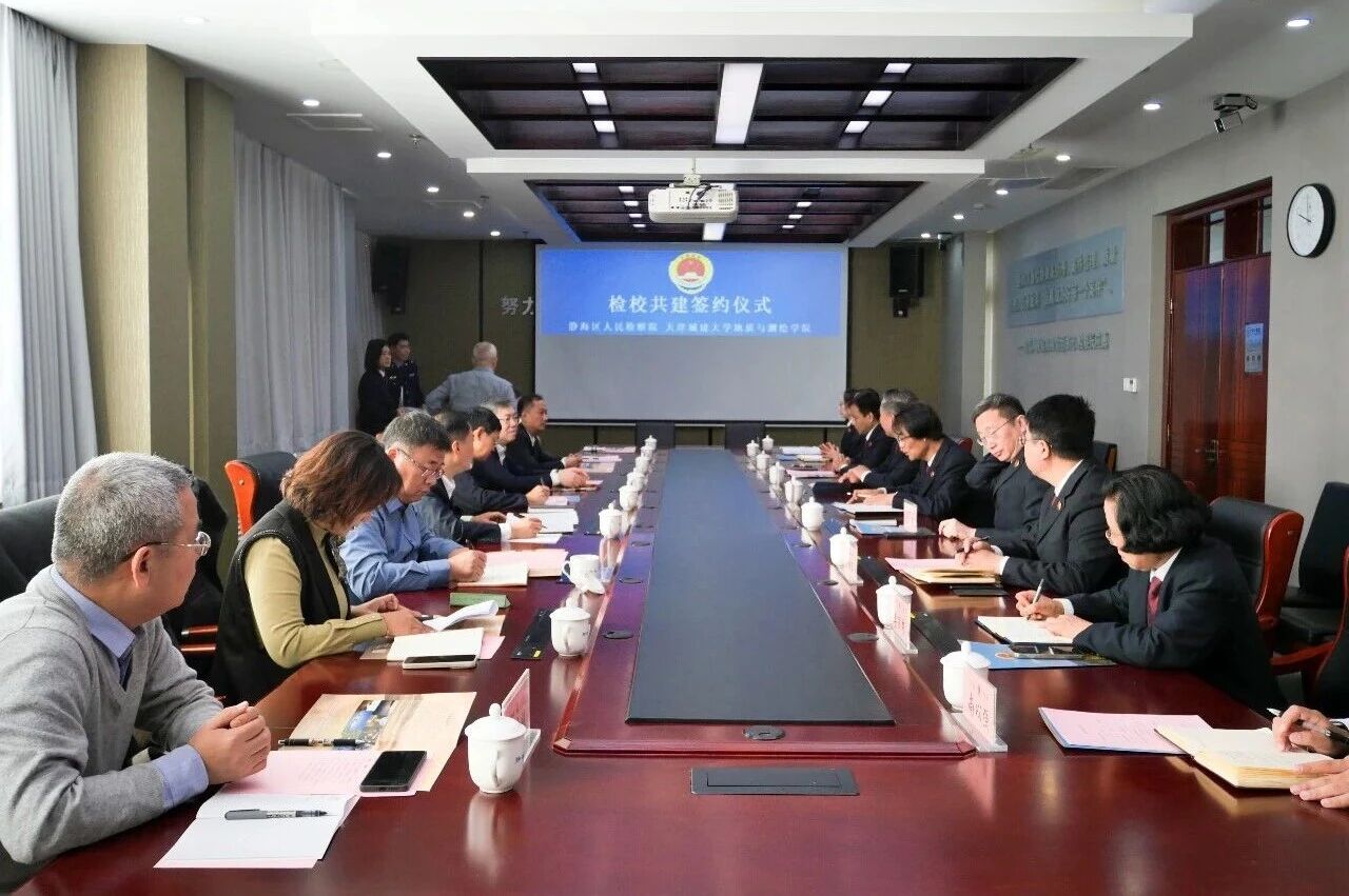 近日,bv伟德地质与测绘学院与静海区人民检察院签署合作协议,并共同为“卫星遥感辅助检察办案联合实验室”揭牌,签约仪式在静海区人民检察院举行。市检察院党组成员、政治部主任王德群、九三学社天津市委员会秘书长严海、静海区委常委、统战部部长、区政协党组副书记刘启建等嘉宾出席。静海区检察院党组书记、代理检察长孙先锋主持签约仪式。