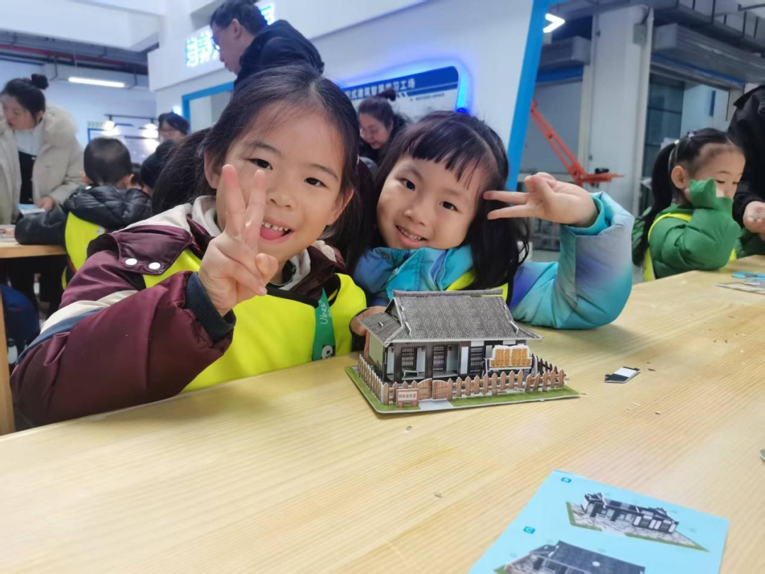 最令孩子们兴奋的当属“民居模型拼装”环节。孩子们分组合作,辨认零件、对齐拼接,在互帮互助中完成组装。短短二十分钟,一座座精致的“小房子”便在小小掌心中拔地而起。举起作品的那一刻,欢呼与掌声此起彼伏,自豪与喜悦在每张脸上荡漾。