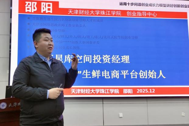 天津市教育工作重点调研课题、“十步问道创业成长力模型”教研室成员邵阳老师以《运用十步问道讲好创业课——设计思路·知识框架·教学方法·案例解析》为题,结合自身创业与投资经历,提出以学生兴趣为切入点,通过“聊家常-引主题-析案例-讲知识点-再深化-互动/实操”的七步教学法,将商业逻辑潜移默化地融入鲜活案例中,有效提升了学生的学习兴趣与课堂参与度。