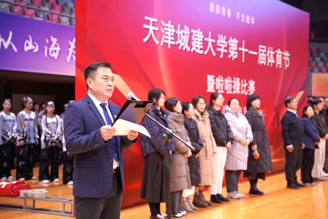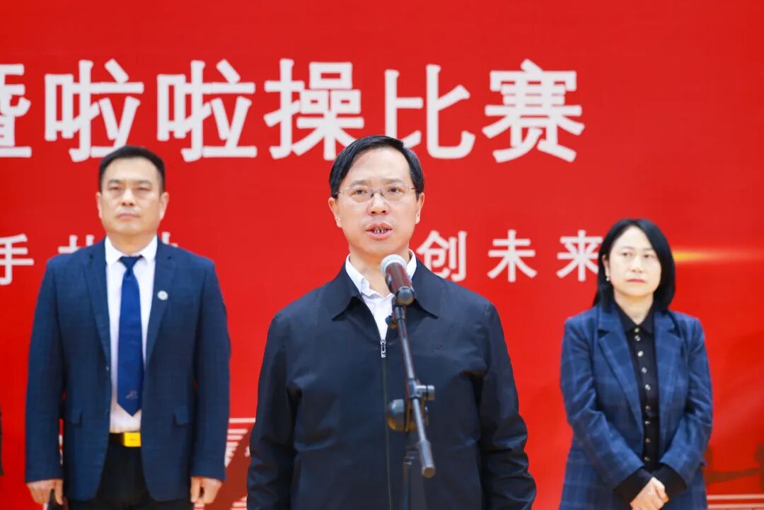 陈志华宣布开幕,并同师生共同观看啦啦操表演。