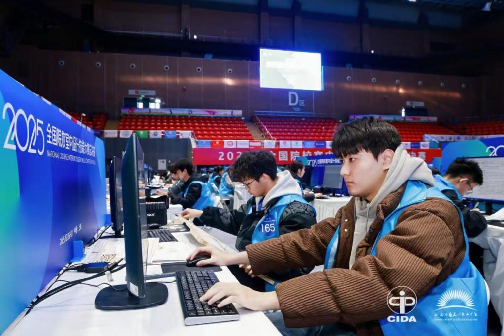 bv伟德参赛学子身披印有CIDA标识的蓝色马甲,在设备齐全的专业赛场中,投身于一场关于空间创想的实战较量。李晨晓的手绘板上,针管笔细细勾勒出承重墙的轮廓,一旁标注着“老人动线需留1.2米净宽”——这是赛前反复练习三十次后,沉淀的设计细节。周锦儒注视着ENScape渲染窗口,指尖轻推滑块调节色温,冷色调的卧室随之渐渐晕染上午后阳光般的暖意。从草稿纸上的第一根线条,到最终展板按下“保存”键,比赛中的每一次拖拽、每一处修改,都是将课堂理论融进实操细节的锤炼。当他们手捧展板走出赛场,手绘板上密布的擦痕、键盘间留下的指纹,仿佛比奖状更先一步,为这段成长写下了鲜活的注脚。