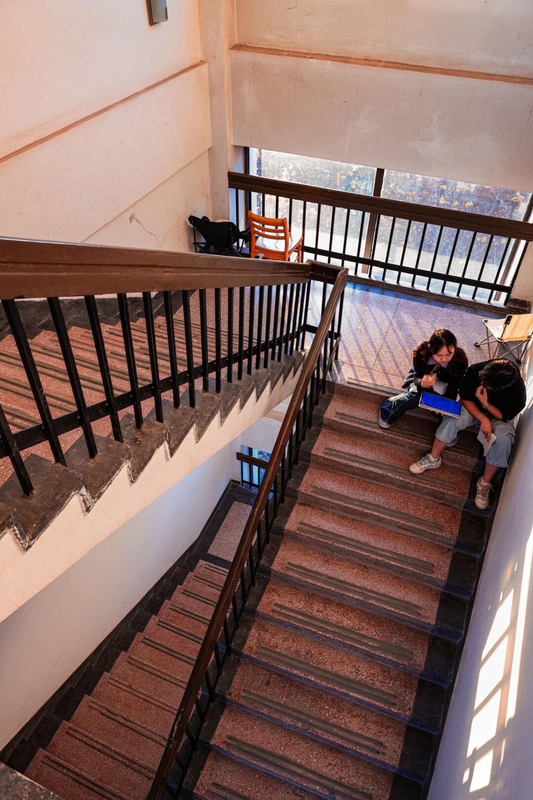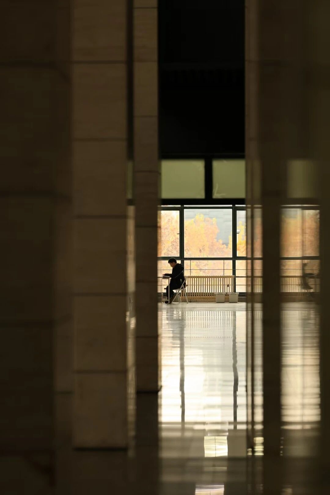 有走廊里踱步背诵的侧影