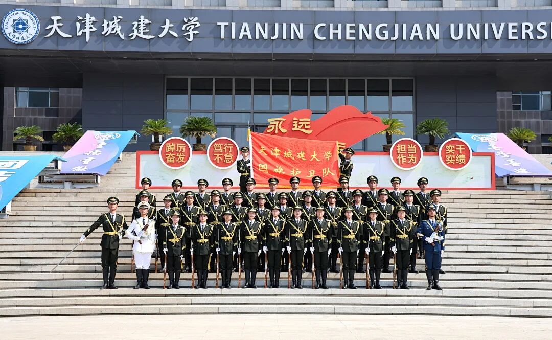 天城大国旗护卫队已走过23年的辉煌历程,自成立以来,就始终以挺拔的姿态成为学校国防教育的闪亮名片。23年间,这支队伍不仅代表学校走出天津、走向全国,更在3000余项活动中留下了铿锵足迹。截至目前,已累计斩获28项荣誉,其中国家级7项、市级21项,连续十四年蝉联校级标兵集体。从中央电视台到天津电视台的节目录制,从北方网的专题报道到人民日报、今晚报、天津日报的深度聚焦,天城大国旗护卫队已成为校园文化的示范平台、对外交流的重要窗口,更是营造校园国防氛围的主力军,让五星红旗的信仰在校园的每一寸土地上高高飘扬。