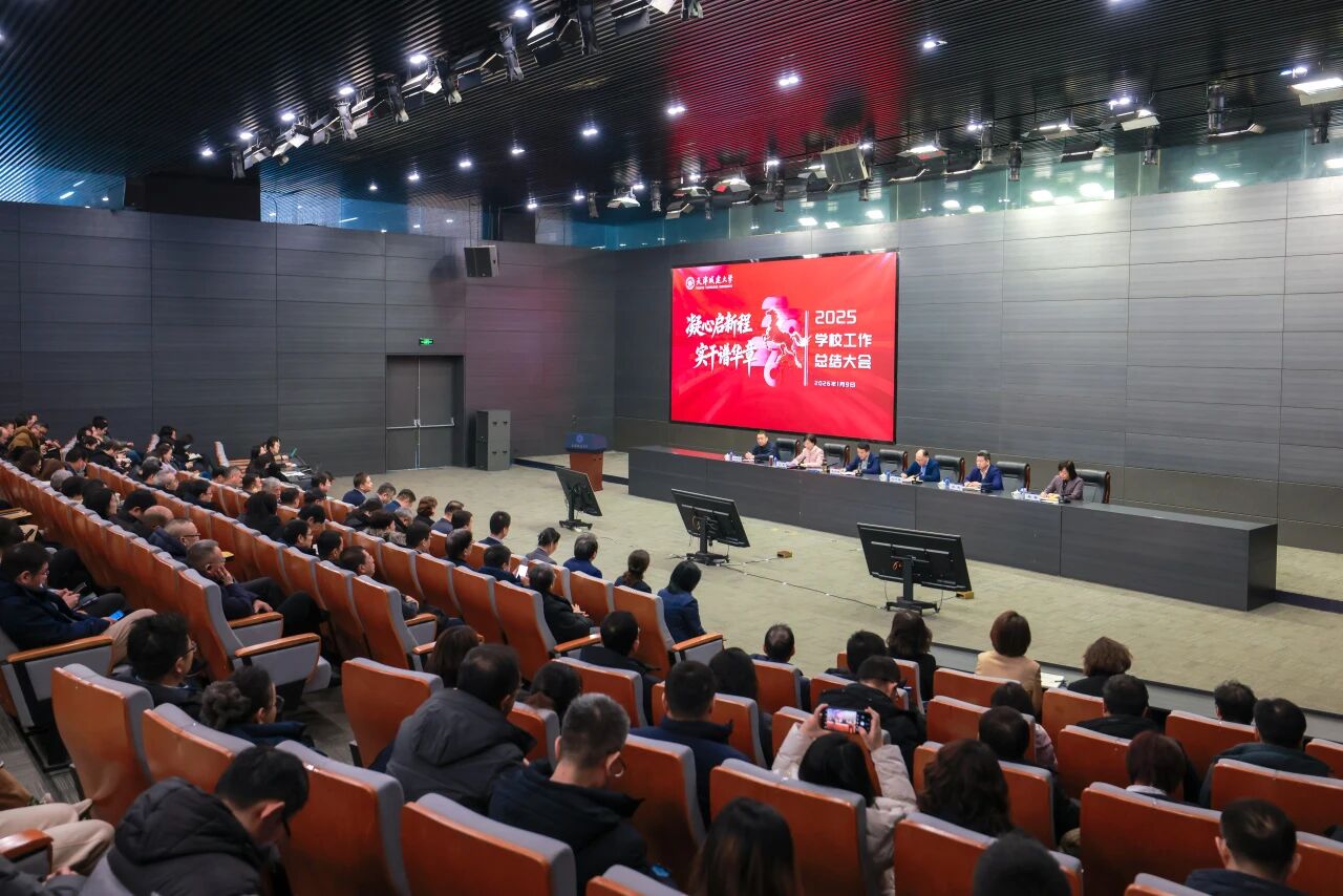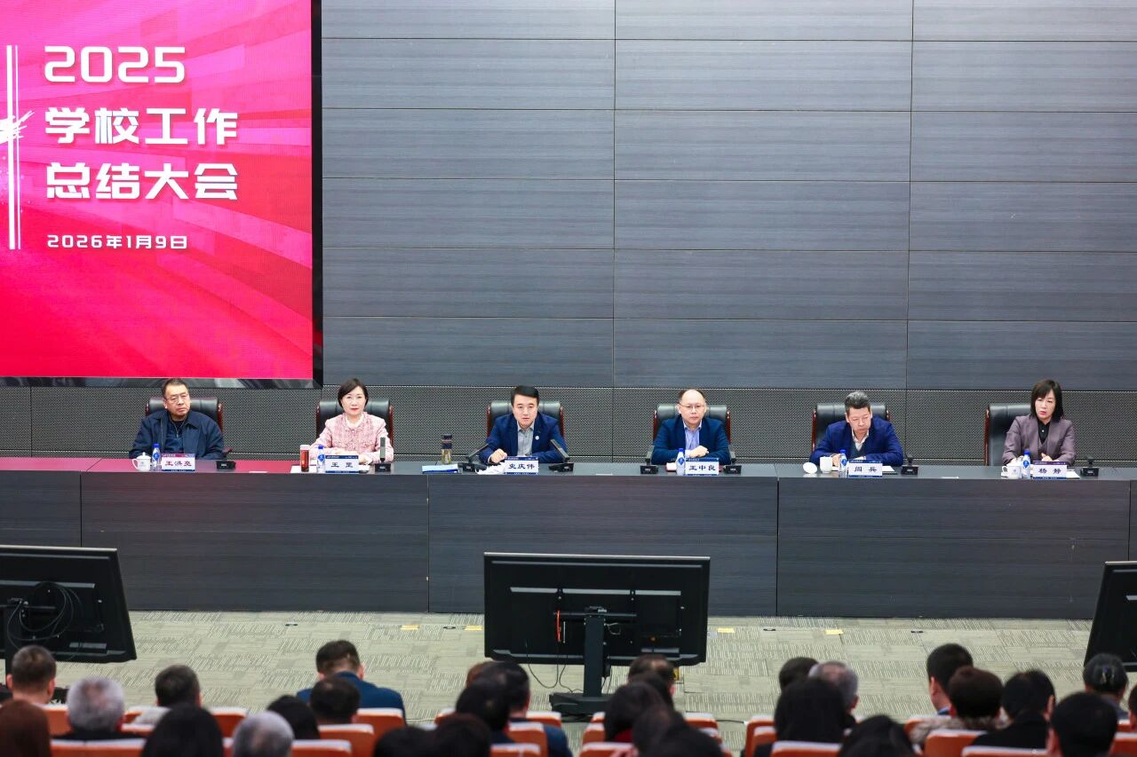 近日,学校召开2025年学校工作总结大会。全面总结本年度学校各项工作成果,表彰在教学科研、管理服务等领域表现优异的先进单位、部门,进一步凝聚全校共识、汇聚奋进力量,推动学校事业发展在新起点上实现新跨越。校党委书记史庆伟出席会议并讲话,校长王中良作学校工作报告,校党委副书记王罡主持会议。校领导班子成员、全体处级干部、全体科级干部和师生代表参加会议。