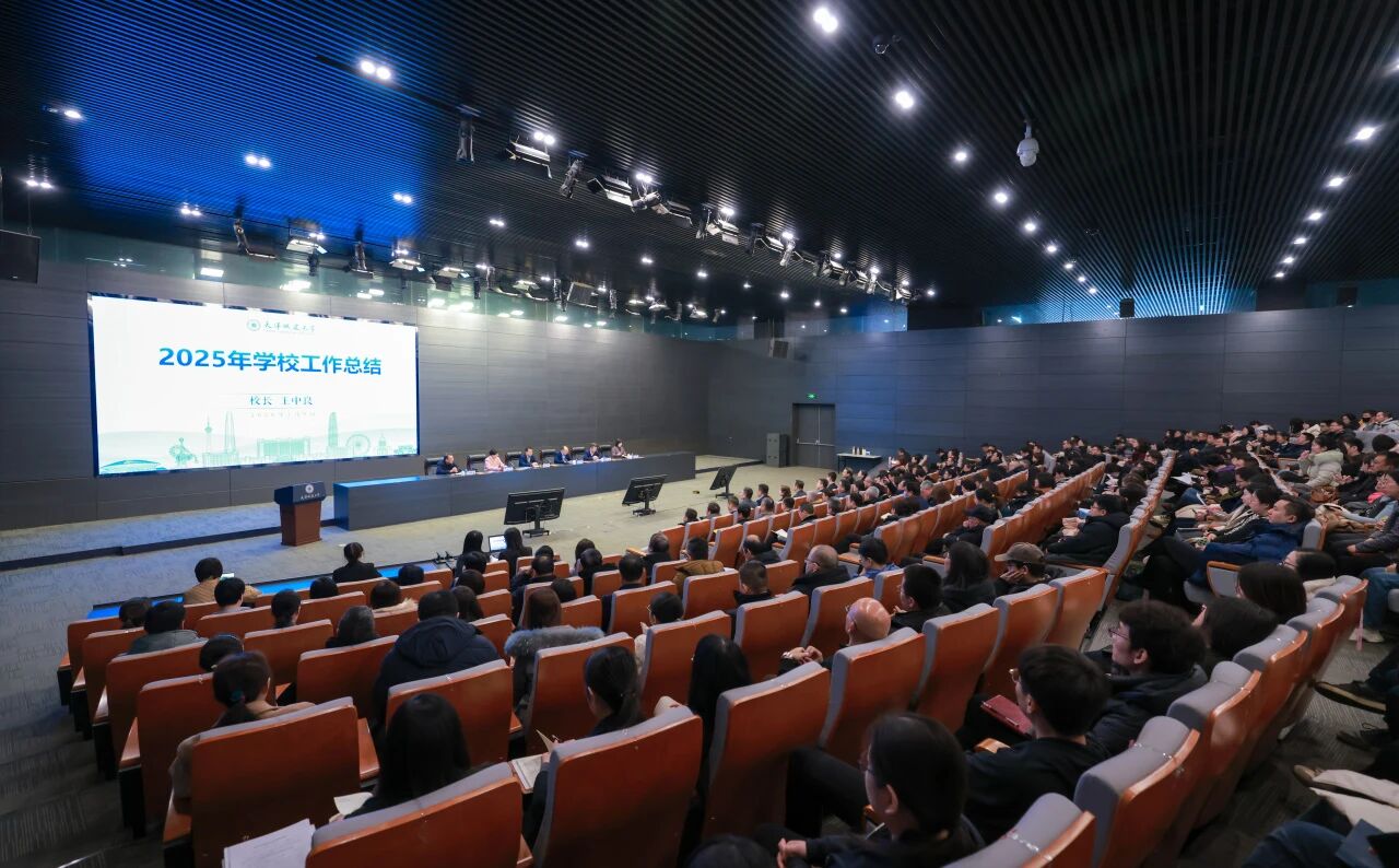 王中良全面回顾总结了过去一年学校在思政育人、本科教育、研究生培养、学科建设、科技创新、师资队伍、国际交流、治理效能等八大方面,取得的一系列令人鼓舞的成绩与突破。王中良表示,2025年,是学校第三次党代会胜利召开的启新之年,是“十四五”圆满收官、“十五五”科学谋划之年,是教育强国建设全面推进的关键之年,更是天城大人凝心聚力、实干笃行,在高质量发展道路上阔步前行的丰收之年。学校坚持以习近平新时代中国特色社会主义思想为指导,全力推进教育科技人才一体化发展,关键办学指标取得重大突破,办学能力和治理效能系统提升,实现了“十四五”圆满收官。他代表学校向全校干部师生的辛勤付出表示衷心感谢。