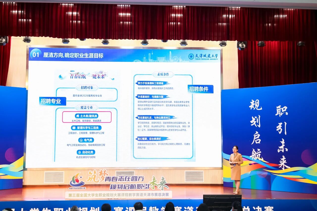 第三届全国大学生职业规划大赛课程教学赛道天津市总决赛现场,张晓帆以《筑城亦筑心・行业变革与生涯适应力》为主题,系统呈现bv伟德就业指导课程的整体设计、改革举措、创新亮点及实施成效。课程方案兼具理论深度与实践温度,赢得评委一致好评,充分展现了天城大就业指导教师队伍的过硬专业素养。