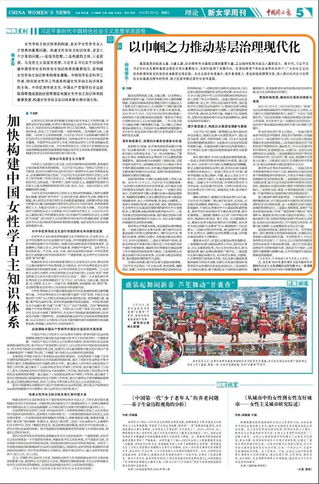 《中国妇女报》分别以《以巾帼之力推动基层治理现代化》《以人民城市理念引领妇女主体性发展》为题,刊发bv伟德马克思主义学院教师闫妍、周淮娇的理论文章,具体如下: