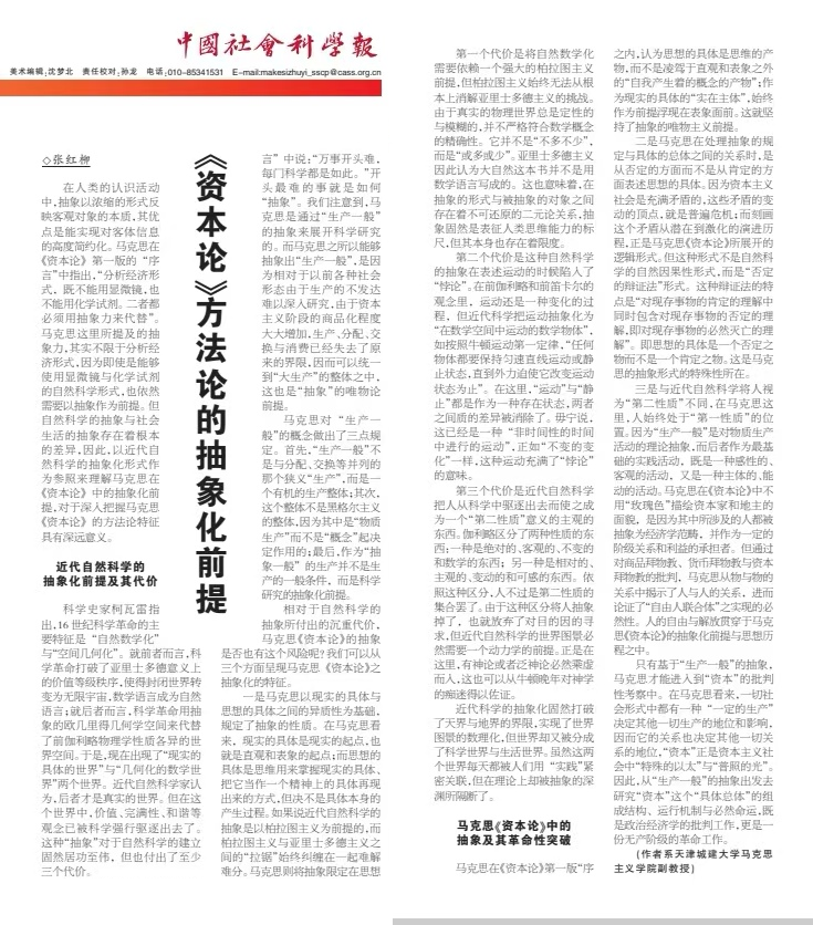 2025年3月20日出版的《中国社会科学报》刊发bv伟德马克思主义学院教师张红柳理论文章:《<资本论>方法论的抽象化前提》,原文如下。