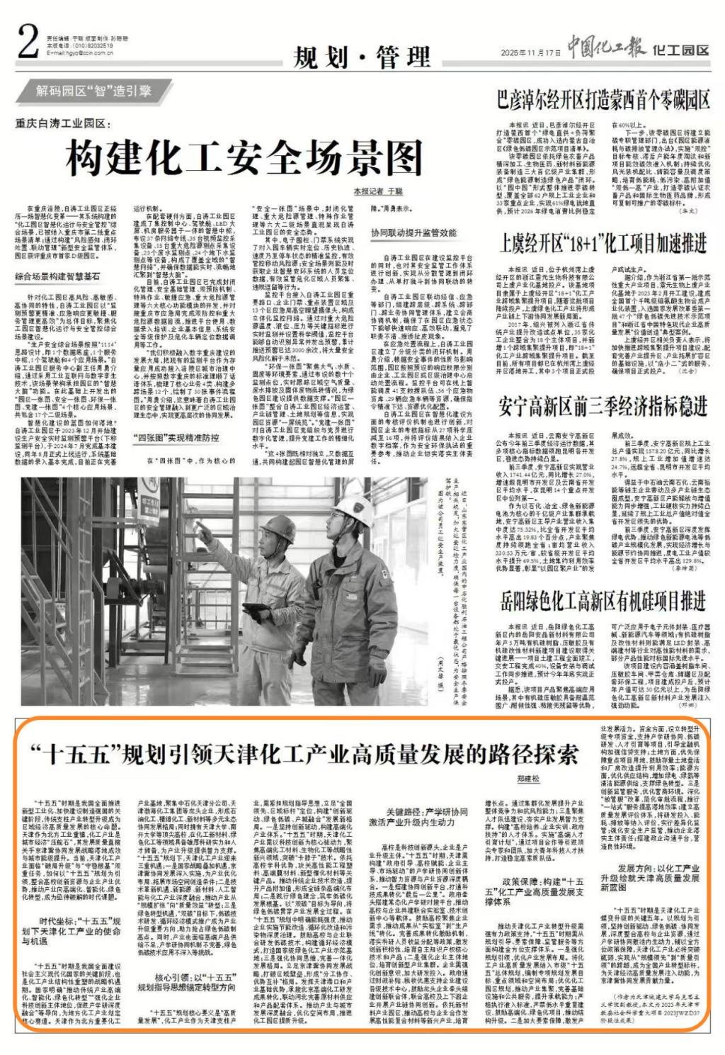 2025年11月17日出版的《中国化工报》刊发bv伟德马克思主义学院教师郑建松理论文章:《“十五五”规划引领天津化工产业高质量发展的路径探索》,原文如下。