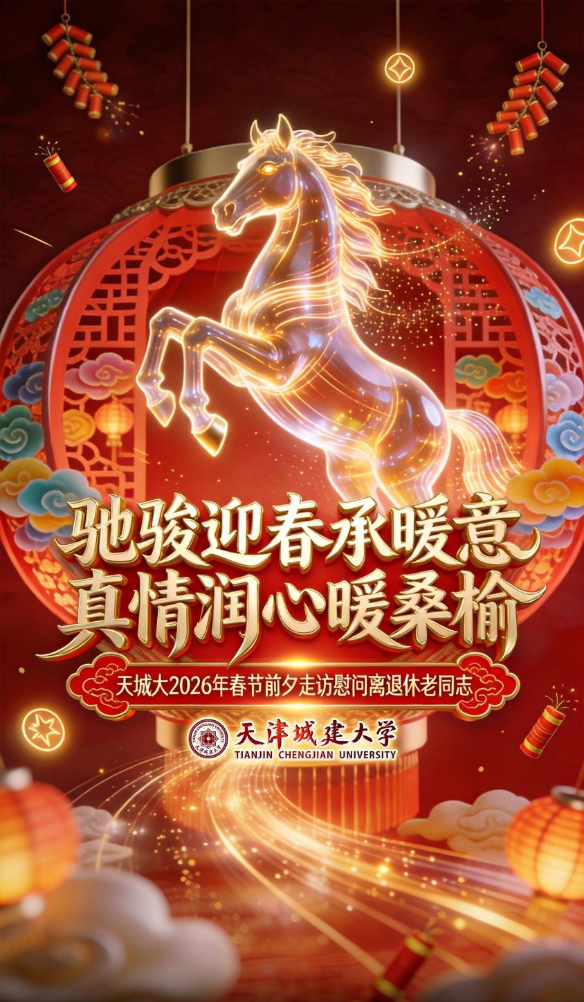 驰骏迎春承暖意,真情润心暖桑榆。走访慰问不仅传递着党和政府对离退休老同志的温暖与关怀,更积聚起广大离退休老同志奋斗“十五五”、开启新征程的银发之力。一直以来,学校高度重视老干部工作,始终秉持尊重老同志、爱护老同志、重视老同志的理念,着力营造尊老敬老爱老、感恩敬贤的浓厚氛围。在新的一年里,学校将持续优化服务保障举措、提升服务质量,让老同志共享改革发展成果,与全校师生携手并肩,共同开启“十五五”规划发展新征程。