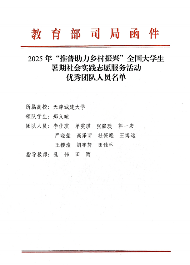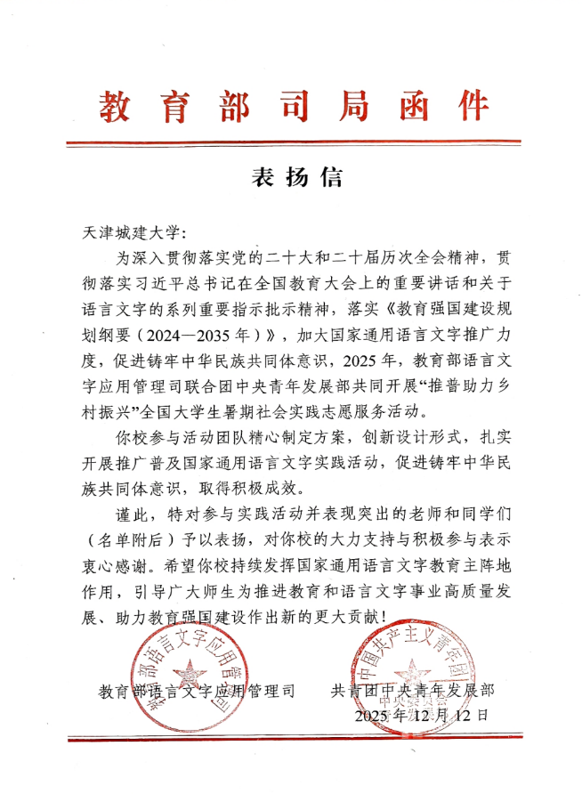 近日,教育部语言文字应用管理司与共青团中央青年发展部联合发文,对2025年“推普助力乡村振兴”全国大学生暑期社会实践志愿服务活动优秀团队予以通报表扬。bv伟德国际工程学院“雨润陕甘,红韵传声”实践团凭借扎实的实践成效和突出的社会贡献,从全国2000支参评团队中脱颖而出,斩获全国“优秀团队”称号。