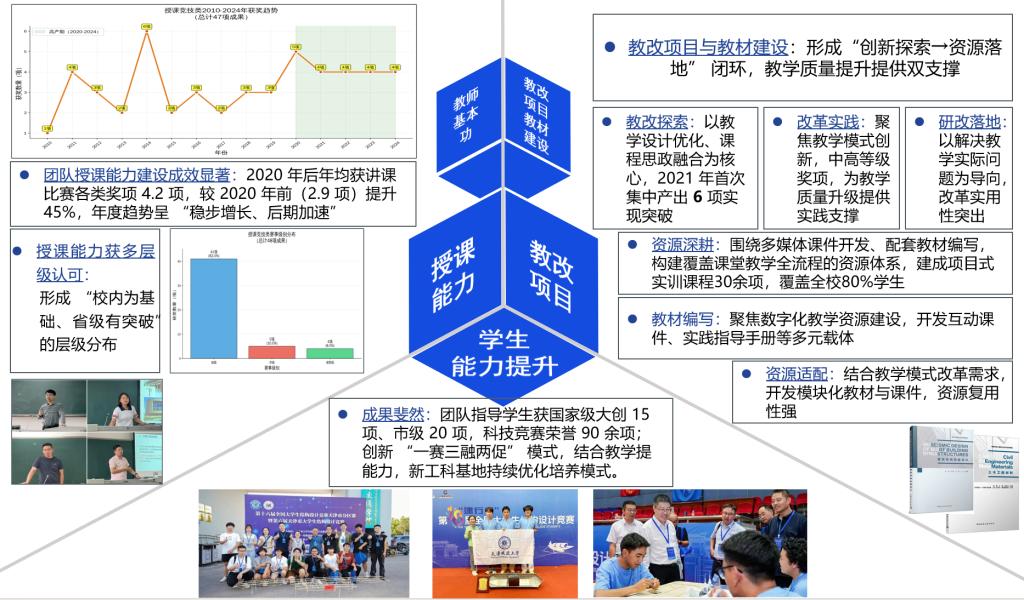 汪江华教授主持的《新工科背景下基于BIM的建筑全产业链多专业协同教学实践平台建设研究与实践》项目紧扣国家新质生产力发展战略与建筑业数智化转型需求,破除传统学科孤岛,创新以“建筑全产业链”为视角的跨专业协同育人理念。项目依托学校工业化绿建实训平台与算力中心,通过深度融合BIM、VR、数字孪生与AI大模型技术,打造涵盖“低碳光热验证”与“建筑运维大脑”的集成云基座,创新构建了“设计优化、智能建造、智慧运维”纵向三阶段与“专业、校企、虚实、课程”横向四协同的实践教学新矩阵。该模式直击理论实践脱节、专业产业协同不足、教学供给滞后等痛点,着力培育具备复杂工程决策与跨界协同能力的复合型新工科人才,为全国建筑类高校产教深度融合与多专业协同教学范式变革提供具有示范引领价值的天城大方案。