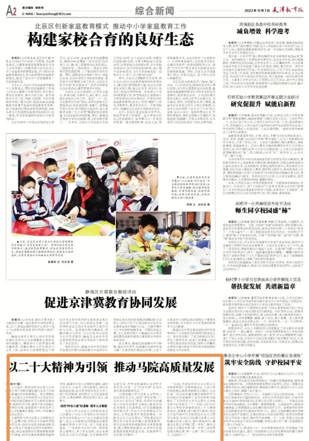 “全国、天津高校重点马克思主义学院党委同仁会聚党建论坛,大家分享的特色做法和典型案例亮点频闪,为我们进一步以高质量党建引领新时代马院内涵式发展提供了宝贵经验和实践路径。”