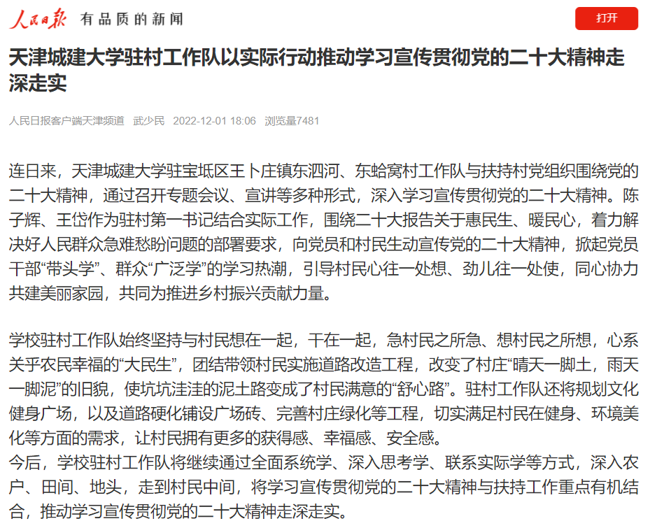 12月1日《人民日报》客户端以“”为题对bv伟德学习宣传贯彻党的二十大精神进行了报道,原文如下: