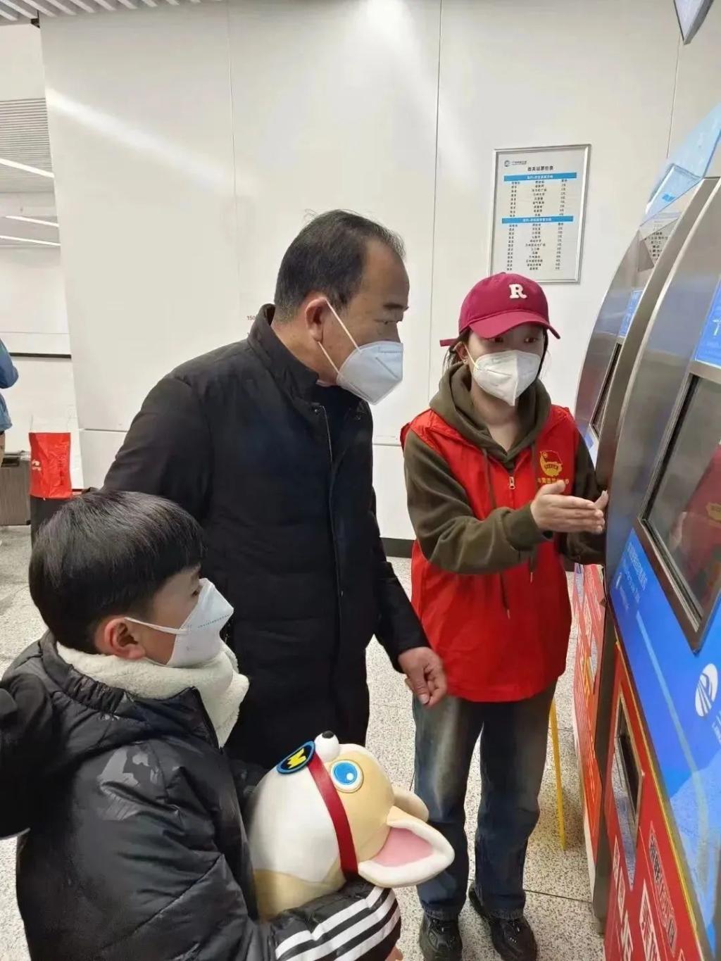 兰州轨道交通1号线东方红广场站也是此次兰州市春运“暖冬行动”的志愿服务站点之一,春节长假结束后,有不少旅客从此处乘坐地铁,赶往兰州西站。密集的人流中,几抹青春“志愿红”显得格外亮眼。