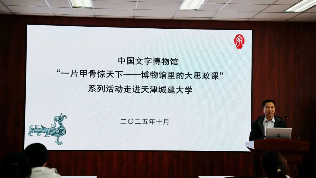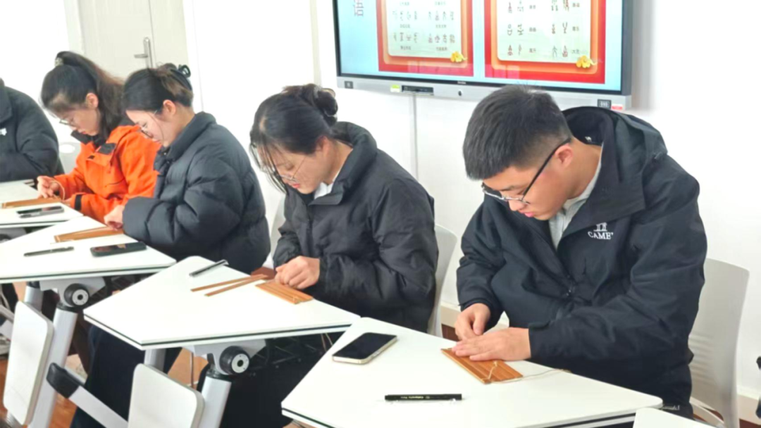 中国文字博物馆副研究馆员王双庆以《契刻文明:甲骨文里的华夏基因密码》为主题,循着契刻的痕迹,解码甲骨文字中的文明密码,追溯中华文明的源头基因,并通过竹简编连与书写、甲骨文雕版印刷等文化创意互动环节,让师生近距离感受文字的魅力,充分认识到甲骨文蕴含的丰富内涵与民族精神。