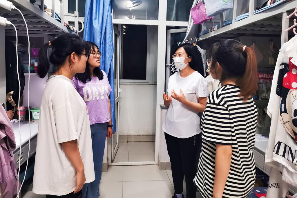 在宿舍与学生亲切交流