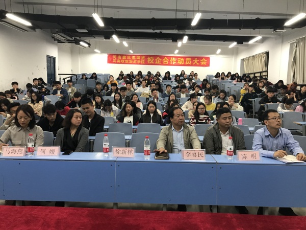 2018年10月12日晚,欧冠官网校企合作项目“校园旅游超市”学期实践动员大会在合501教室郑重召开,院长徐新林、书记李喜民、教学副院长马海燕、副书记陈明、旅游管理专业教研室主任王中雨、教学秘书陈英、河南鑫凤凰国旅集团董事长何媛、经理曹宇以及旅行社各部门主管、旅游管理、景区管理专业的二百余名学生出席了大会。