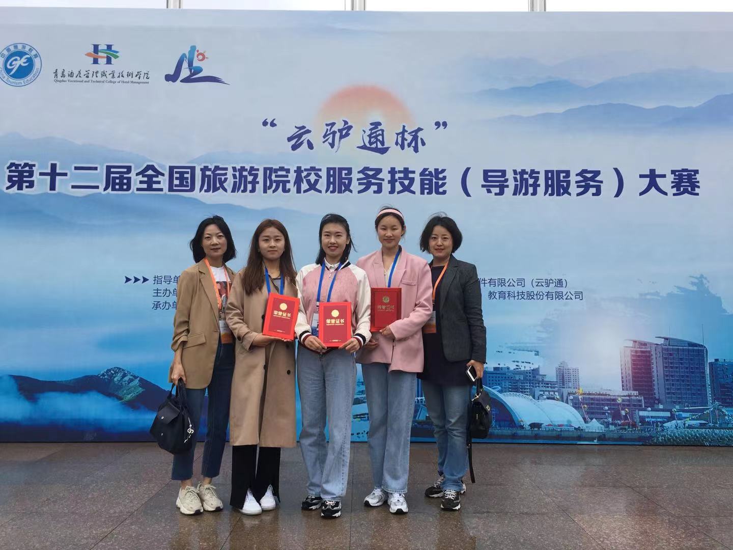 “云驴通杯”第十二届全国旅游院校服务技能(导游服务)大赛是由中国旅游协会旅游教育分会、全国旅游职业教育教学指导委员会联合主办,青岛酒店管理职业技术学校承办的一项国家级赛事。共有来自全国29个省(自治区、直辖市)的344所本专科高等学校的1035名选手参加了这次大赛,该赛事已经成为学生展示专业技能,对接行业需求的窗口。为我国旅游界和社会各界提供了交流的平台和典型案例。学院领导多次勉励选手认真准备,调整状态,赛出成绩,赛出风格。张颖霞、贺红茹、薛奕妹、王中雨担任教练分别对对参赛选手进行了全方位的训练和指导。