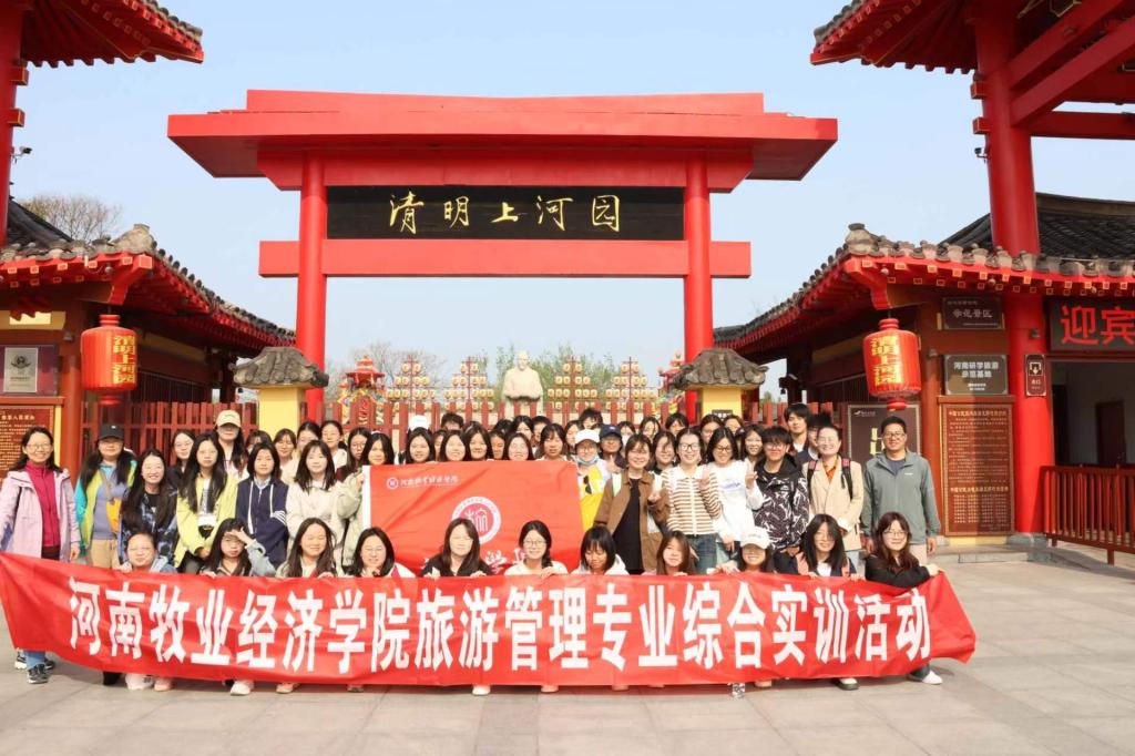 2024年4月9日,欧冠联赛官网2023级旅游管理专业学生在旅游教研室老师带领下前往清明上河园开展行业实训调研活动。