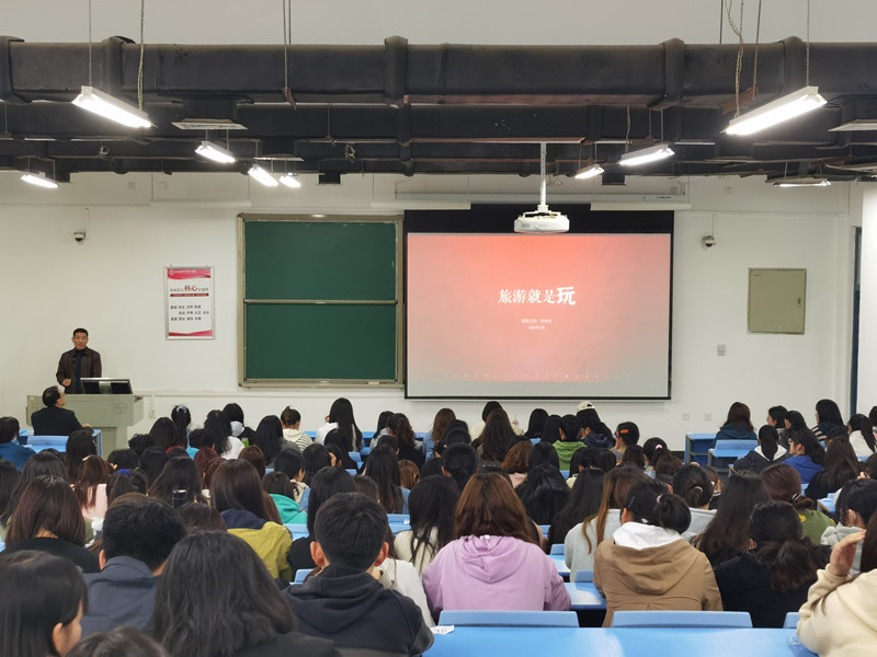 纪向东经理以“旅游就是玩”为切入点,破除以往的传统发展方式,针对旅游景区怎样经营以及经营的指标提出了自己的见解,向同学们分享了自己的一些感悟。纪经理在讲座中谈到,当今的建设应以产品好、服务好为品牌优势,以更好地满足旅游者的需求为出发点,加强旅游景区的基础设施建设。同时结合具体的景区案例,为同学们分析了景区发展的途径和方向。例如云台山根据消费者的消费心理推出年卡的优惠,这就是当代旅游中的,所谓,也就是创新,以创新促发展。