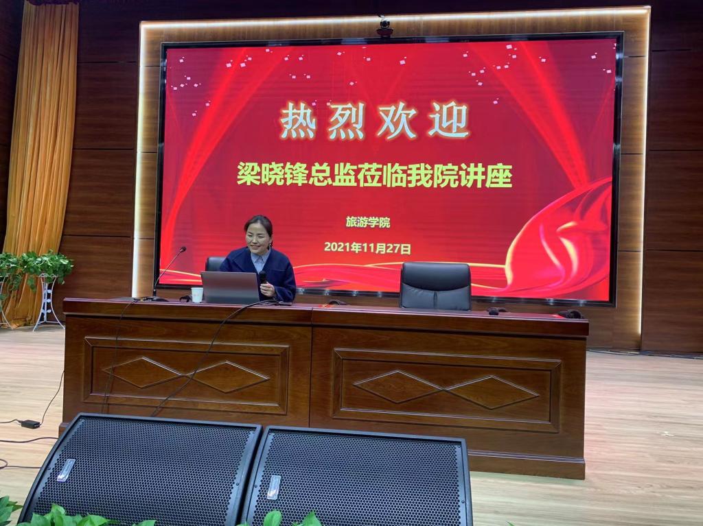 永和铂爵国际酒店房务总监梁晓锋女士应邀于 11月27日上午来欧冠官网在龙子湖校区大学生演播中心为欧冠联赛官网2018级酒店管理专业的师生 “五星级酒店房务运行模式与管理”专题讲座。讲座由酒店管理专业教师杨洋老师主持。