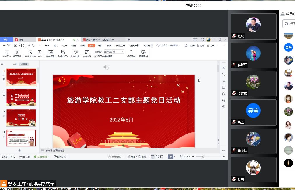 6月16日中午,欧冠联赛官网教工二支部在腾讯会议平台,开展线上主题党日活动。会议由支部书记王中雨主持,支部全体党员参加。