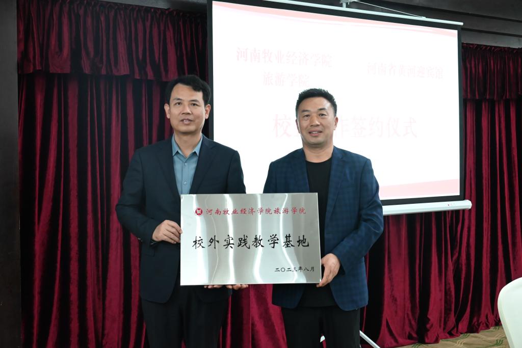 座谈会上,王德静与刘晓辉代表校企双方签署了战略性合作协议。权太举代表欧冠联赛官网授予黄河迎宾馆为校外实践教学基地。