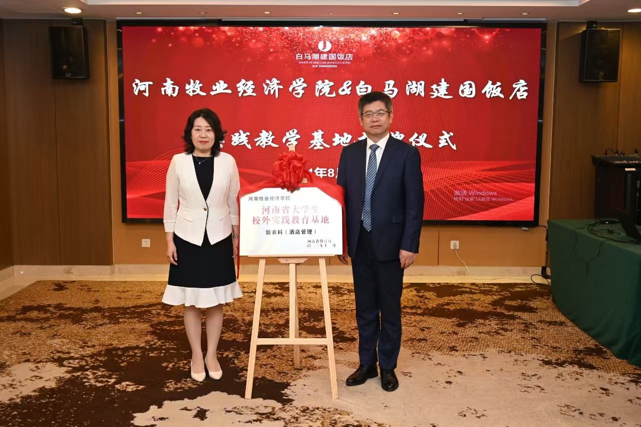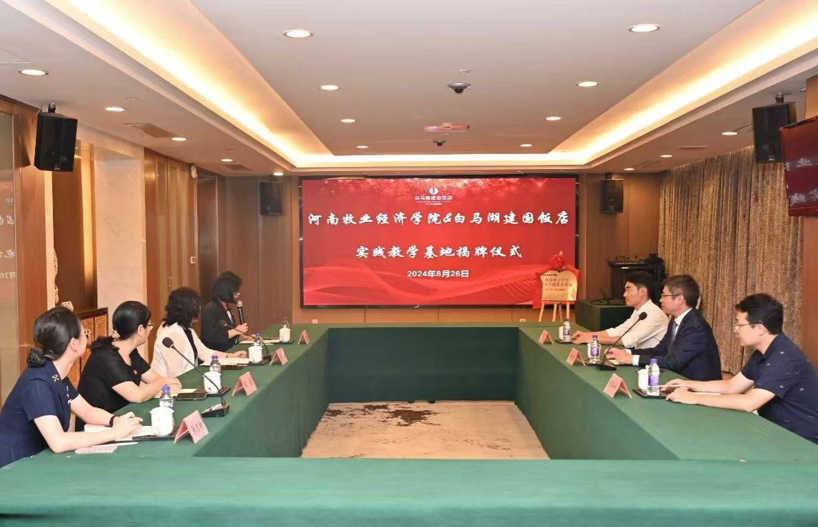 仪式伊始,总经理张静茹介绍了杭州白马湖建国饭店的发展历程,历经12年获得行业各界认可,承办超1万场大型会议活动,荣获优秀企业管理品牌、优秀饭店、先进单位等奖项。企业将充分发挥专业优势,有一套完整的人力资源管理体系,深度考虑学生职业发展路径,从而打造优质的实践平台,让企业、学校、社会共同受益。随后,欧冠官网院长王德静介绍了河南牧业经济学院欧冠联赛官网的概况,是目前河南省办学历史最长,在校生规模最大,专业设置最为齐全的本科层次欧冠联赛官网。“河南省旅游业高素质应用型管理人才的培养基地”。王院长表示杭州是座美丽的城市,这座城市和中原大地有着深厚的历史渊源,望校企双方在今后的合作中共同进步,培养出更多优秀人才,并再次对今天出席仪式的领导与工作人员表示感谢。