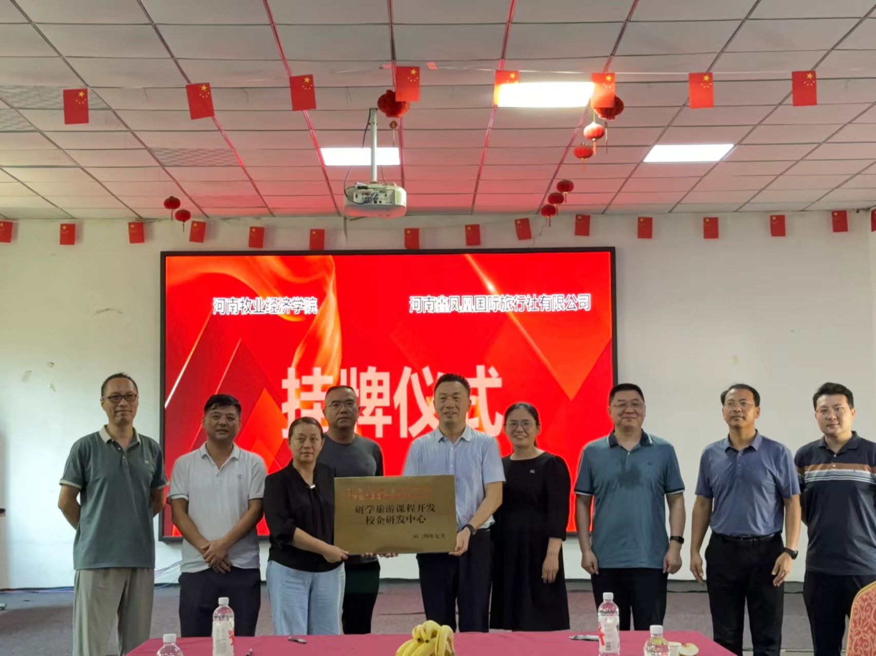 9月20日,欧冠官网科学技术处副处长史岳鹏、副处长张红霞,欧冠联赛官网党委书记权太举、副院长王中雨、科研办公室主任王泽峰、会展管理教研室主任连建功一行六人前往河南鑫凤凰国际旅行社有限公司、河南省和光月色农文旅发展有限公司,举行“校企研发中心”合作协议签订和揭牌仪式,并与两家企业开展座谈。