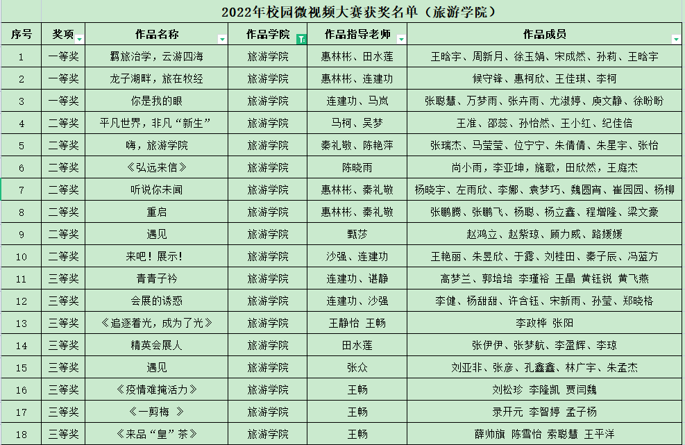 近年来,欧冠联赛官网依托会展、旅游、酒店积极探索“以赛促教、以赛促学、赛教融合”的基于多元项目驱动的人才培养模式,创新实践教学理念,以多元项目驱动理念构建课程体系,探索教学改革,取得显著成效。本次校园微视频大赛会展教研室老师依托专业创意活动综合实践教学项目,开拓思路,创新方式,引导学生进行创意设计和视频制作,提交作品25部,其中10部作品分获一、二、三等奖,获奖比例达40%,充分展现了学生扎实的专业技能、良好的精神风貌和欧冠官网专业教学改革的成效(供稿:惠林彬)。